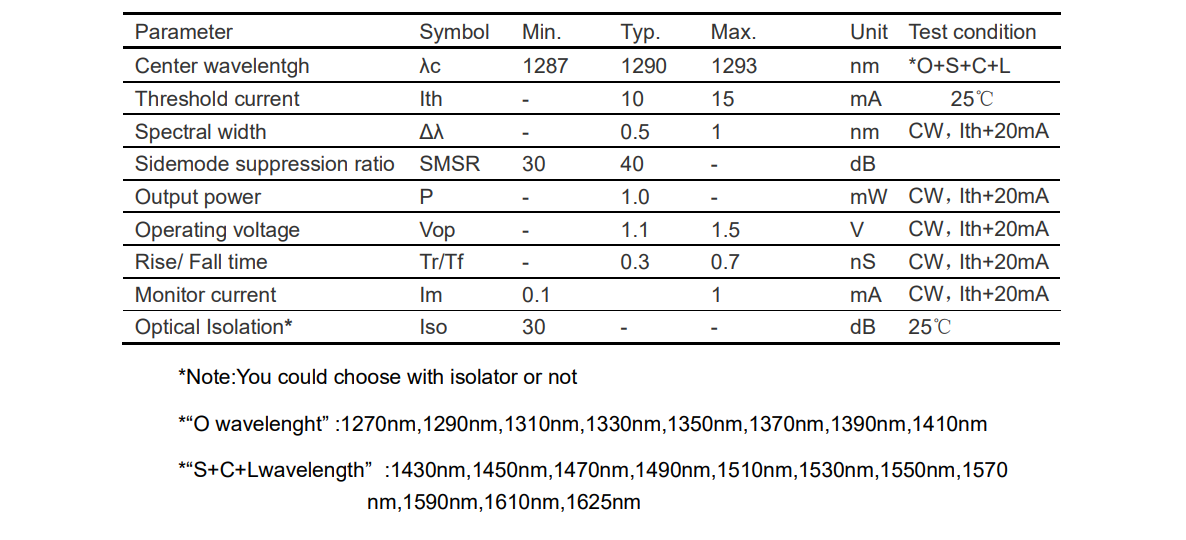 1290nm DFB CWDM 激光器组件